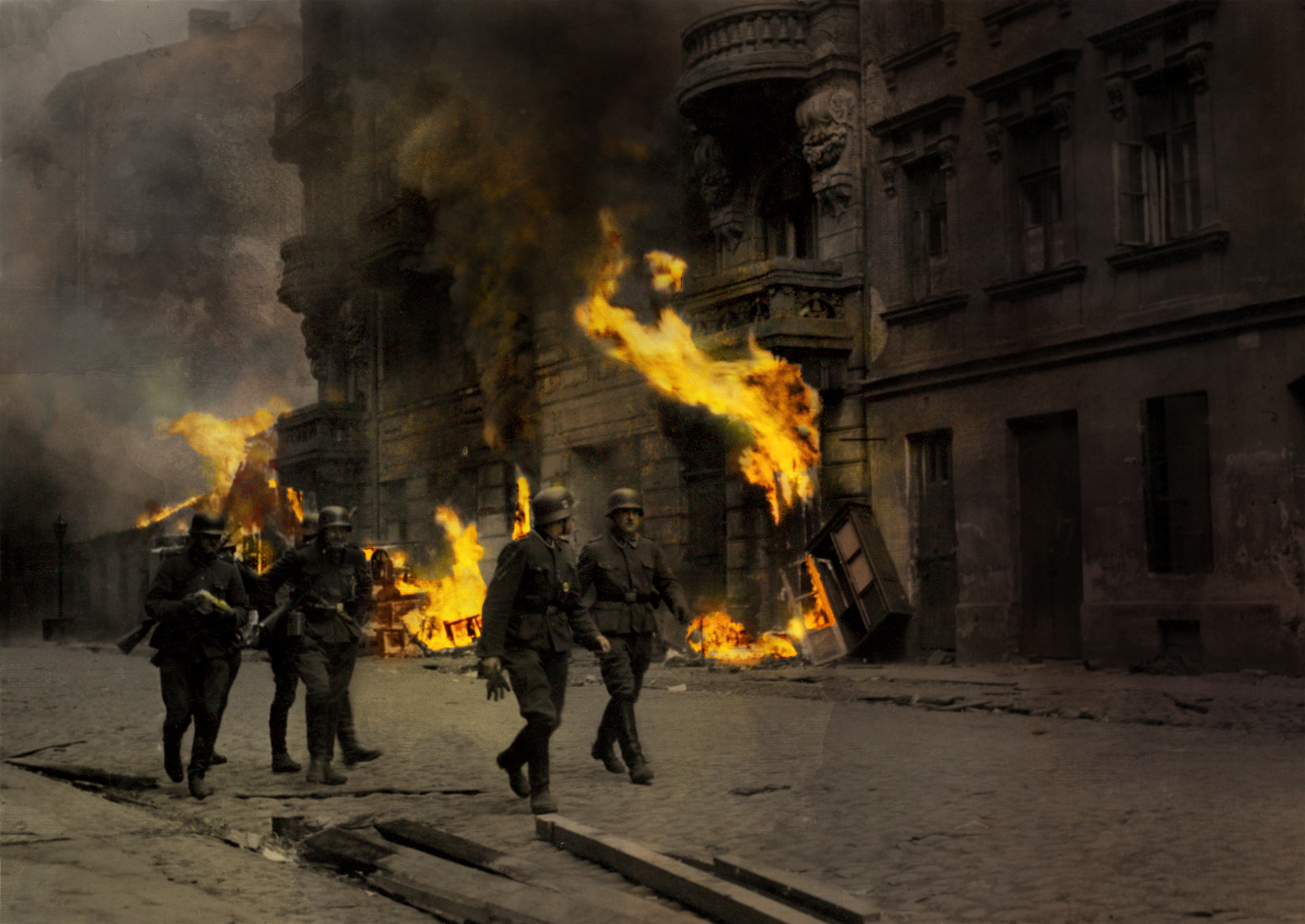 19 kwietnia 1943 roku, zgodnie z rozkazami Reichsführera SS i policji Heinricha Himmlera i pod osobistym dowództwem SS-Brigadeführera Jürgena Stroopa 2500 esesmanów i żołnierzy Wehrmachtu rozmieściło prócz zwykłej broni piechoty, ciężkie karabiny maszynowe, artylerię i broń pancerną. Wspierali ich ochotnicy SS: Łotysze, Litwini i Ukraińcy.