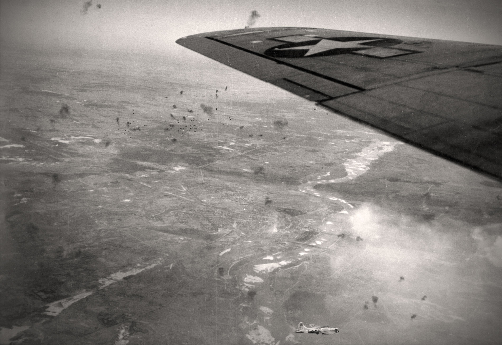 18 września 1944 r. Zdjęcie nad Warszawą wykonane przez jednego z amerykańskich lotników z pokładu jednego z B-17 z 95 Grupy Bombowej podczas operacji „Frantic 7”.